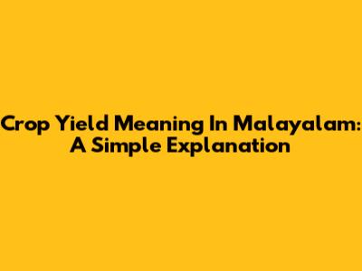Crop Yield Meaning In Malayalam: A Simple Explanation