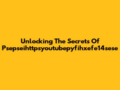 Unlocking The Secrets Of Psepseihttpsyoutubepyfihxefe14sese