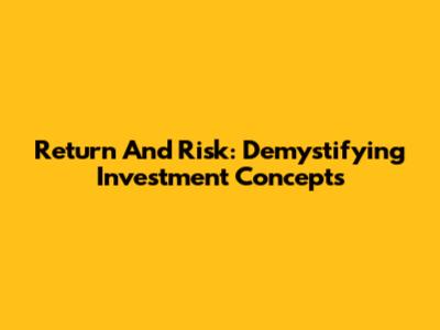 Return And Risk: Demystifying Investment Concepts