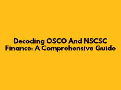 Decoding OSCO And NSCSC Finance: A Comprehensive Guide