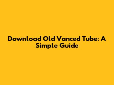 Download Old Vanced Tube: A Simple Guide