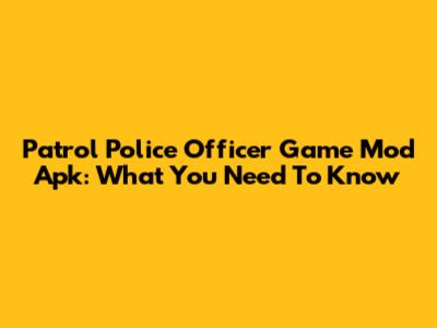 Patrol Police Officer Game Mod Apk: What You Need To Know