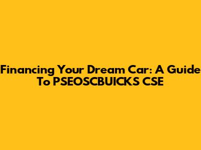 Financing Your Dream Car: A Guide To PSEOSCBUICKS CSE