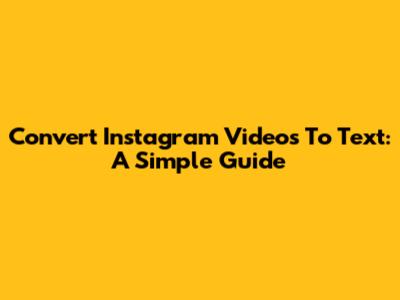 Convert Instagram Videos To Text: A Simple Guide