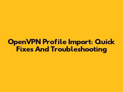 OpenVPN Profile Import: Quick Fixes And Troubleshooting