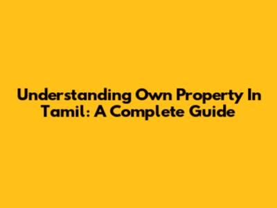 Understanding 'Own Property' In Tamil: A Complete Guide