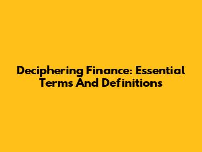 Deciphering Finance: Essential Terms And Definitions