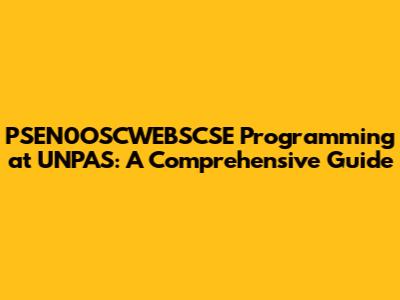 Hey guys! Ever wondered about the fascinating world of PSEN0OSCWEBSCSE programming at UNPAS? Well, buckle up because we're about to dive deep! This guide is your go-to resource for understanding everything from the basics to the more complex aspects of this program. Let's get started!