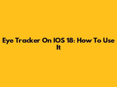 Eye Tracker On IOS 18: How To Use It