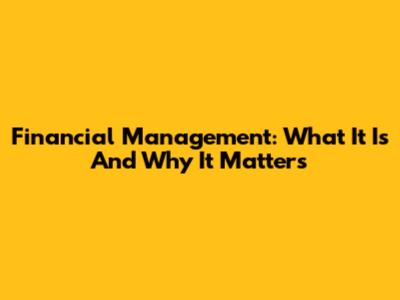 Financial Management: What It Is And Why It Matters