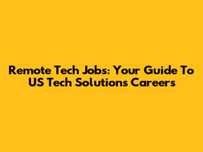 Remote Tech Jobs: Your Guide To US Tech Solutions Careers