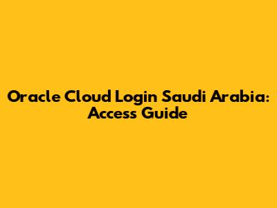 Oracle Cloud Login Saudi Arabia: Access Guide