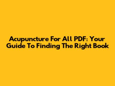 Acupuncture For All PDF: Your Guide To Finding The Right Book