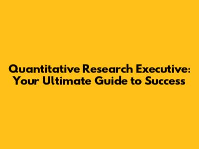 Hey there, future Quantitative Research Executives! Are you curious about this dynamic field? Well, you've come to the right place. This guide is your one-stop shop for everything you need to know about becoming a Quantitative Research Executive. We're diving deep into the responsibilities, required skills, and the exciting career paths this role offers. Get ready to unlock the secrets to a successful career and become an expert in the world of numbers and data analysis! Let's get started, guys!