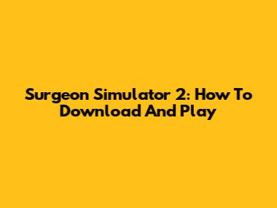Surgeon Simulator 2: How To Download And Play