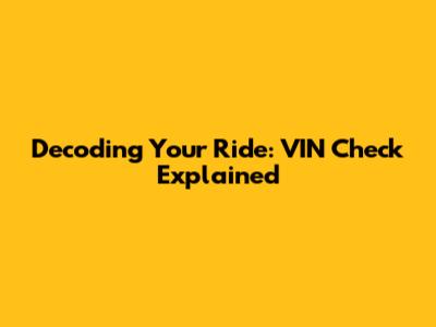 Decoding Your Ride: VIN Check Explained