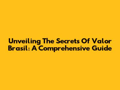 Unveiling The Secrets Of Valor Brasil: A Comprehensive Guide