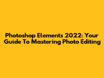 Photoshop Elements 2022: Your Guide To Mastering Photo Editing