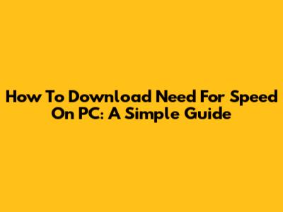 How To Download Need For Speed On PC: A Simple Guide