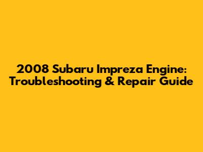 2008 Subaru Impreza Engine: Troubleshooting & Repair Guide