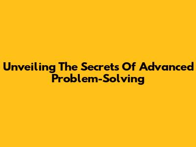 Unveiling The Secrets Of Advanced Problem-Solving