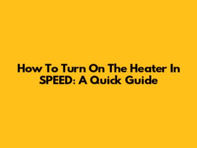 How To Turn On The Heater In SPEED: A Quick Guide