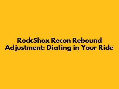 Hey guys! Getting your RockShox Recon fork dialed is super important for having a smooth and controlled ride. One of the key adjustments you'll want to master is the rebound. Rebound controls how quickly your fork returns to its fully extended position after compressing from a bump. Too fast, and you'll feel like you're getting bucked off your bike. Too slow, and your fork will pack up, losing travel and making for a harsh ride. Let's dive into how to adjust the rebound on your RockShox Recon fork like a pro.