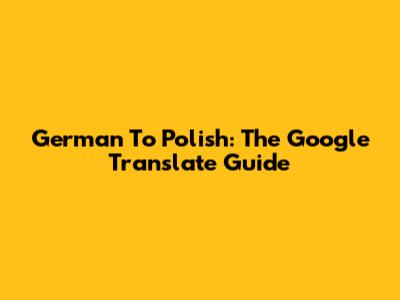 German To Polish: The Google Translate Guide