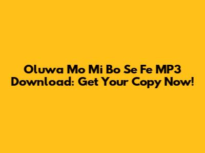 Oluwa Mo Mi Bo Se Fe MP3 Download: Get Your Copy Now!