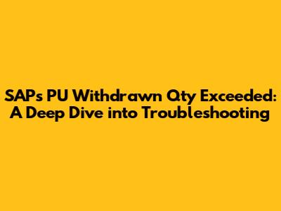 Hey there, SAP enthusiasts! Have you ever encountered the dreaded "PU Withdrawn Qty Exceeded" error in your SAP system? It's a common headache, especially for those dealing with Purchase Orders (POs) and goods movements. This error message pops up when you're trying to withdraw a quantity of a material that's greater than what's available or expected in the system based on the related Purchase Order. Basically, SAP is saying, "Hold up! You're trying to take more than you're supposed to." It can halt your processes, causing delays and frustration. Let's break down this issue, understand why it happens, and explore some solutions to get your SAP system back on track. This article is your guide to understanding and resolving the PU withdrawn quantity exceeded error.