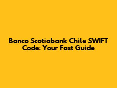 Hey guys! Are you trying to figure out the Banco Scotiabank Chile SWIFT Code? Don't worry, you're definitely not alone! It can be super confusing, but let's break it down in a way that's easy to understand. A SWIFT code, also known as a BIC (Bank Identifier Code), is like the international address for a bank. It tells other banks exactly where to send money when you're doing international transfers. For Banco Scotiabank Chile, this code is essential for ensuring your money gets to the right place, safe and sound. In this guide, we'll dive deep into what the SWIFT code is, why you need it, how to find it, and some common FAQs to clear up any confusion. So, let’s get started and make sure your international banking goes smoothly!