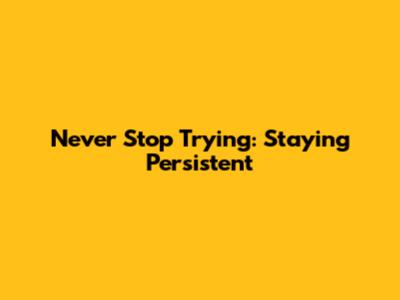 Never Stop Trying: Staying Persistent