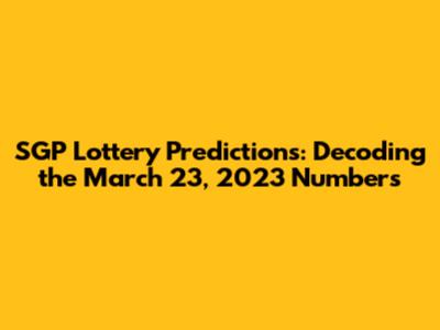 Hey guys! Are you ready to dive deep into the world of SGP lottery predictions? Today, we're going to break down the highly anticipated SGP draw for March 23, 2023. We'll explore various strategies, analyze past results, and, of course, try to uncover some potential winning numbers. While we can't guarantee a win (let's be real, it's still a lottery!), we can certainly provide you with some insights and perspectives to make your choices a bit more informed. So, grab your coffee, get comfortable, and let's get started on this exciting journey into the realm of SGP lottery analysis!