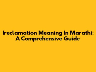 Ireclamation Meaning In Marathi: A Comprehensive Guide