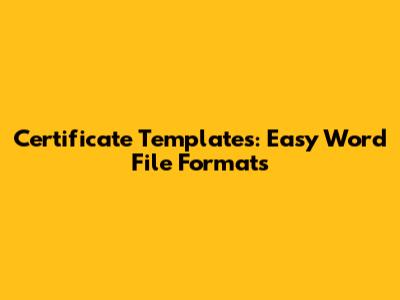 Certificate Templates: Easy Word File Formats