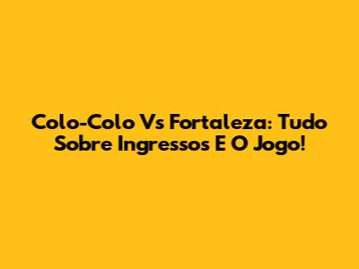Colo-Colo Vs Fortaleza: Tudo Sobre Ingressos E O Jogo!