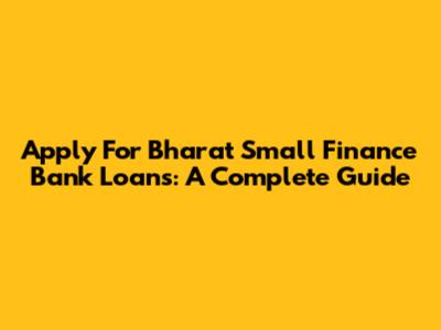 Apply For Bharat Small Finance Bank Loans: A Complete Guide