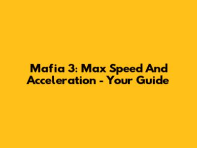 Mafia 3: Max Speed And Acceleration - Your Guide