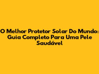 O Melhor Protetor Solar Do Mundo: Guia Completo Para Uma Pele Saudável