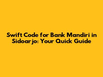 Hey guys, if you're looking to send money internationally to or from a Bank Mandiri account in Sidoarjo, you've probably stumbled upon the term "SWIFT code." Don't worry, it's not as complicated as it sounds! Think of it like a special address for your bank. This guide will break down everything you need to know about Bank Mandiri's SWIFT code in Sidoarjo, so you can make those international transactions smoothly. We'll cover what a SWIFT code is, why you need it, and, most importantly, how to find the right one for your needs. Buckle up; let's get started!