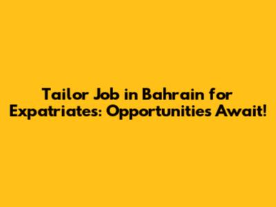 For expatriate tailors seeking new horizons, Bahrain offers a wealth of opportunities. With its thriving tailoring industry, diverse culture, and strategic location, Bahrain provides a promising platform for professional growth and personal enrichment. By following the tips and insights outlined in this article, you can increase your chances of finding the perfect tailor job in Bahrain and embarking on a rewarding career adventure. So, if you're a talented tailor ready for a change, Bahrain might just be the perfect place to stitch together your future!
