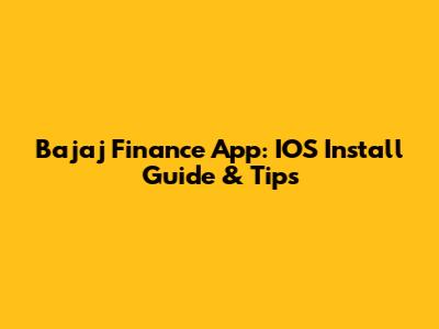 Bajaj Finance App: IOS Install Guide & Tips