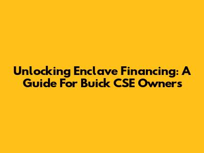 Unlocking Enclave Financing: A Guide For Buick CSE Owners