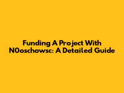 Funding A Project With N0oschowsc: A Detailed Guide