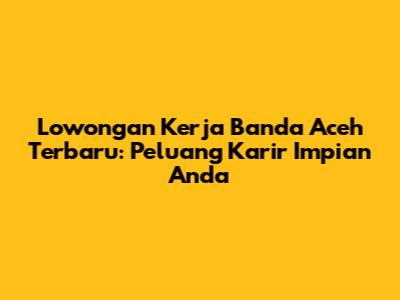 Lowongan Kerja Banda Aceh Terbaru: Peluang Karir Impian Anda