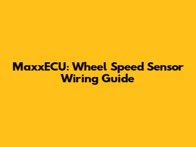 MaxxECU: Wheel Speed Sensor Wiring Guide