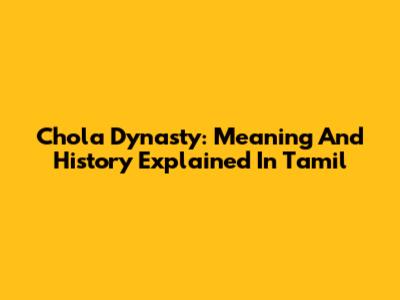 Chola Dynasty: Meaning And History Explained In Tamil