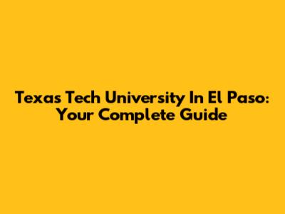 Texas Tech University In El Paso: Your Complete Guide