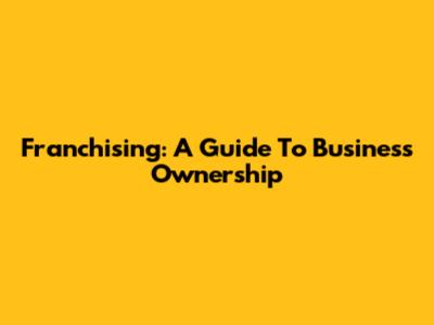 Franchising: A Guide To Business Ownership