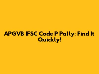 APGVB IFSC Code P Pally: Find It Quickly!